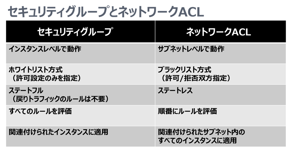 セキュリティグループとNACLの違い