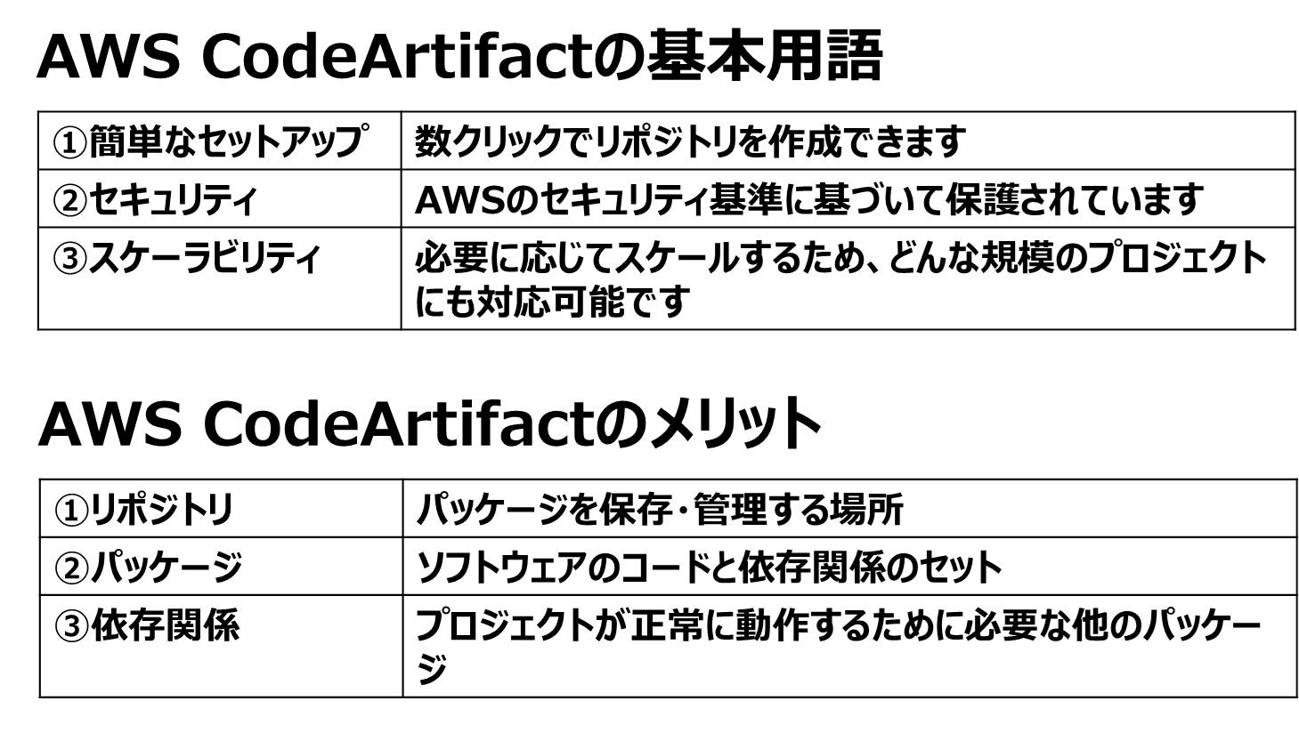 AWS CodeArtifactを使用するメリットは、大きく分けて以下の三点です。